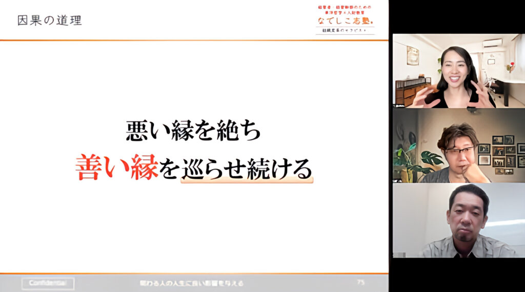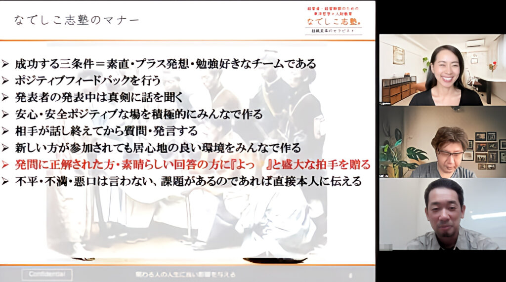加納先生社長、N社長、本日も充実した日々を過ごしの中、なでしこ志塾をご受講いただきまして、誠にありがとうございました。