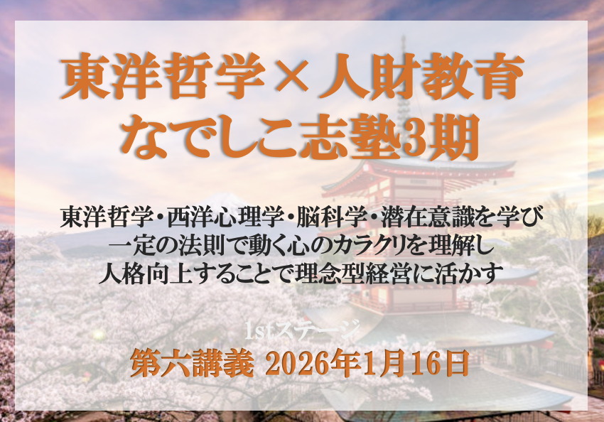 なでしこ志塾3期生 第五講義 2025年10月16日 なでしこ志塾3期生 第五講義 2025年10月16日 経営者・経営幹部のための東洋哲学×人財教育「なでしこ志塾」 3期生の方の、第5講義でした。なでしこ志塾では、・具体的な...